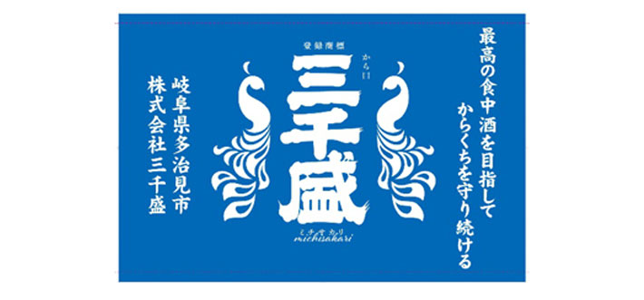 ブルーのベタ地に白色でロゴや文字が入った、こちらのデザインから名入れ制作を行いました。