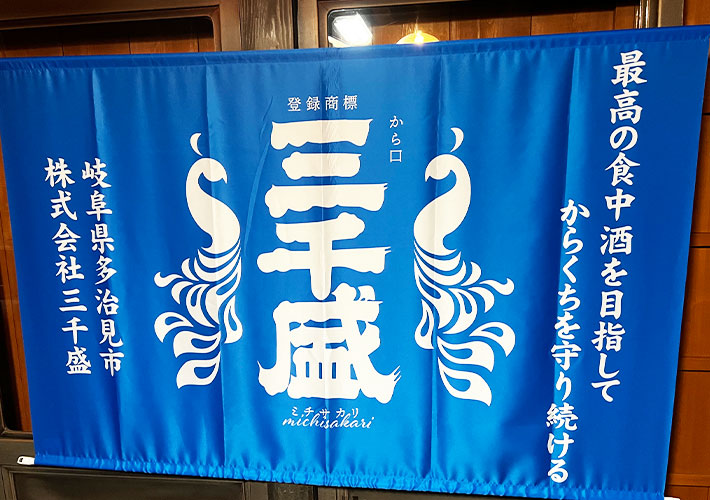 生地は光沢感があり発色のいい防炎スエードを使用いたしました。昇華転写印刷により鮮やかな青色を再現し、高級感のあるタペストリーとなっています!
