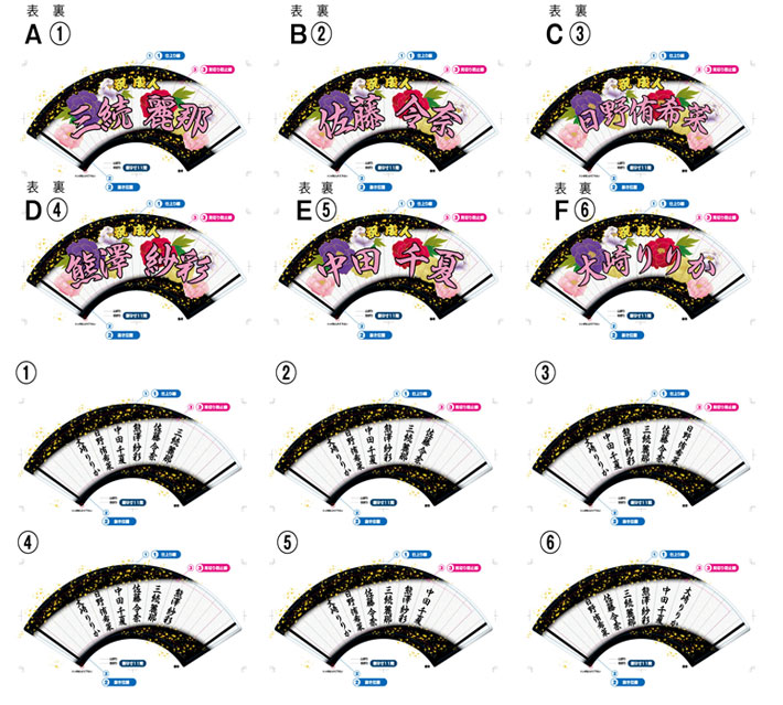 6枚とも共通デザインとなりますが、表面の個人名のみ変更していますので、よりアピール力があり写真映えする仕上がりです。