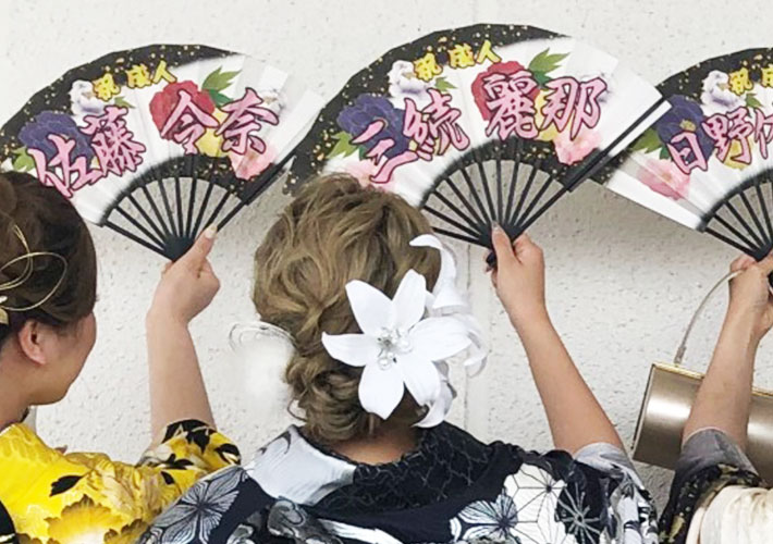 成人式用のオリジナル扇子を名入れ製作させて頂きましたので、ご紹介いたします。