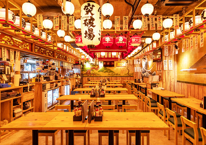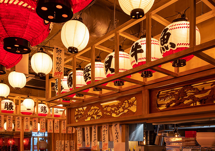 華やかな名入れ提灯を設置することで、店内が明るく活気のある雰囲気になっていますね!