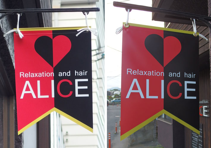 サロン様の屋外装飾用フラッグを製作させて頂きましたので、ご紹介致します。