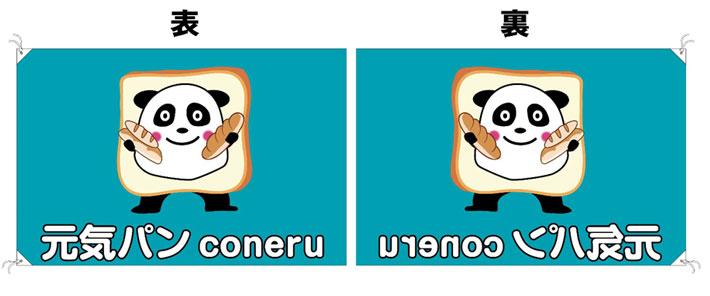 厚手のため裏にデザインが抜けない生地ですが、裏面に反転柄をプリントすることで裏抜けしているようなオリジナル旗を制作することができます。