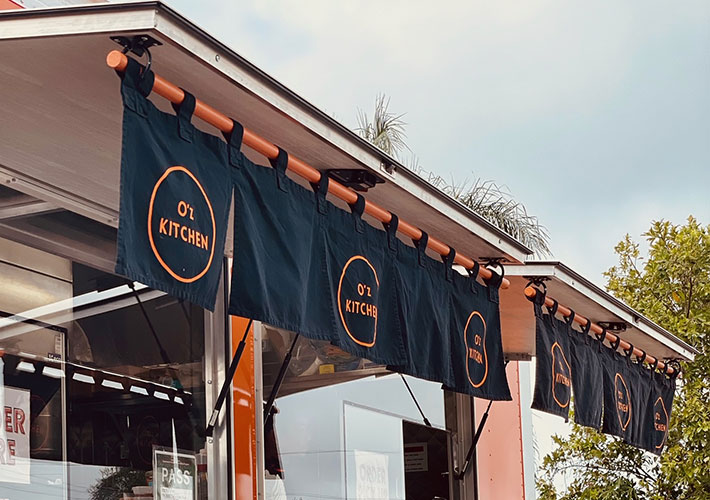 キッチンカーの装飾用オリジナルのれんを製作させて頂きましたので、ご紹介いたします。