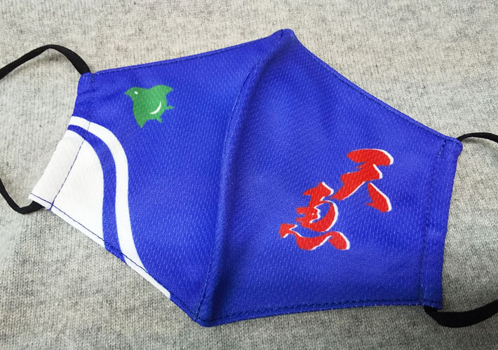 通気性のいい冷感メッシュマスクに全面プリントを施しました。