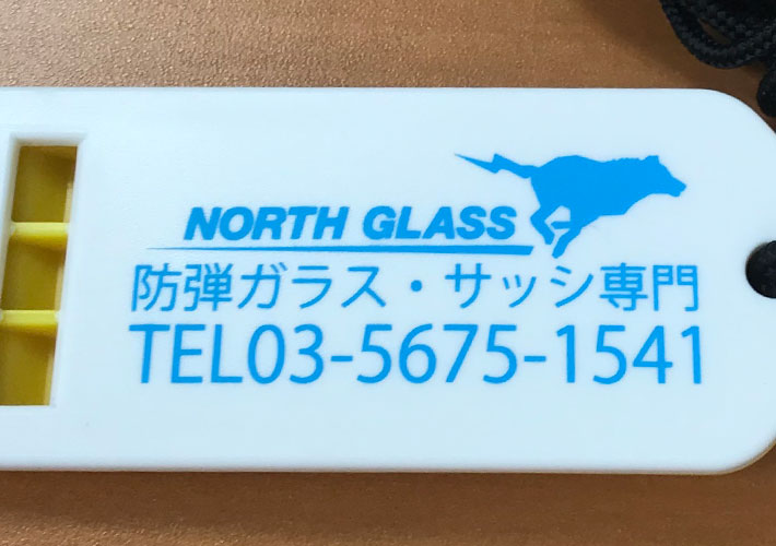 防弾ガラスメーカー様のオリジナルホイッスルを製作させて頂きましたので、ご紹介いたします。
