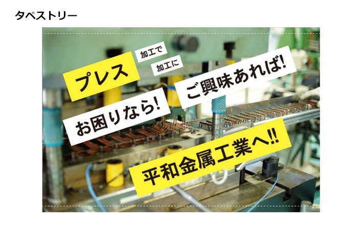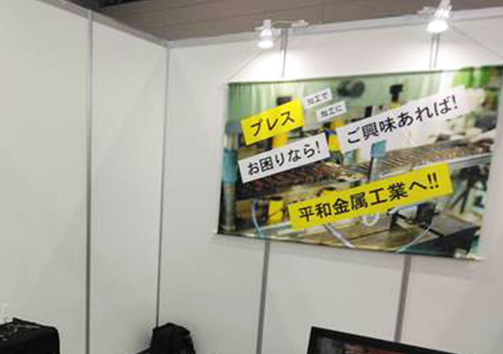 金属工業会社様の展示会出展用にテーブルクロスとタペストリーを製作させて頂きましたので、ご紹介いたします。