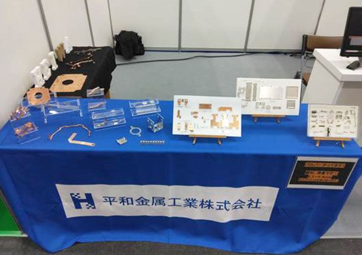 シンプルな青地デザインのクロスに金属製品がよく映えて、展示が目に入りやすいブースとなっていますね!