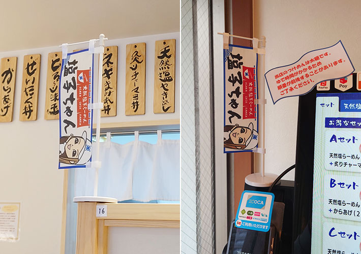 ラーメン店様のオリジナルミニのぼり旗を製作させて頂きましたので、ご紹介いたします。