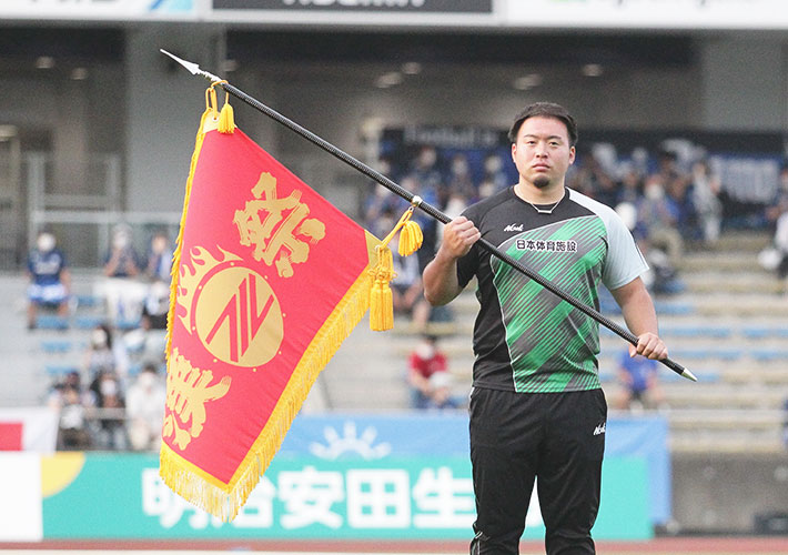 優勝旗といえば、イベントや大会内での表彰式・授与式にて手渡しされるアイテムですので、見映えをよくするためにも専用の旗棒や冠頭のオーダーをお薦めしております。