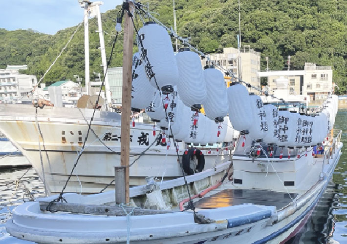 ビニール素材のオリジナル提灯は耐久性・耐水性に優れ、今回のような船の装飾にも最適なアイテムです。