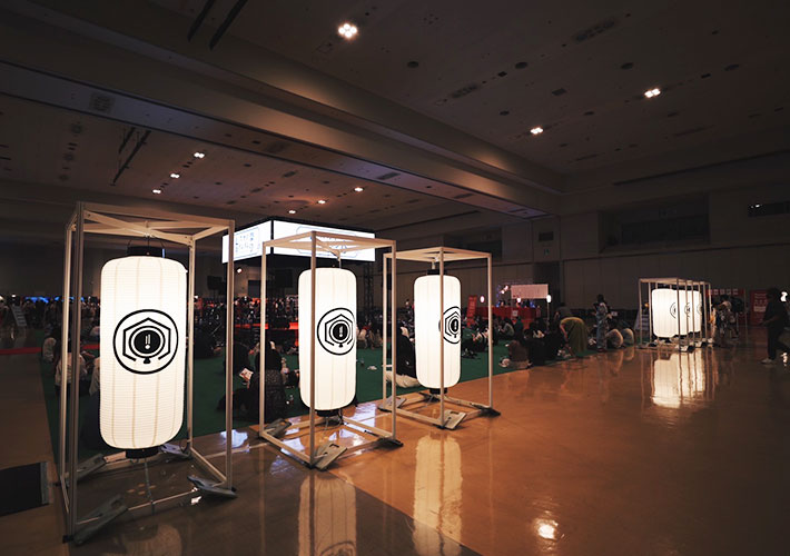 提灯に一文字ずつ名入れ印刷を行い、並べて設置頂くことでモニュメントのような大きなイベント装飾となっていますね!
