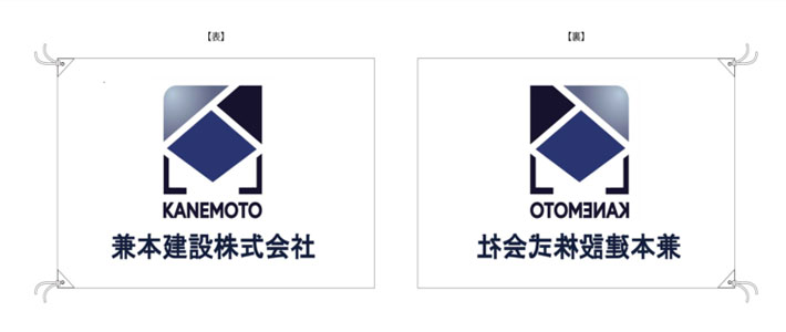 耐久性の高いテトロンツイル生地に両面印刷を施し、オリジナルの社旗を作成いたしました。