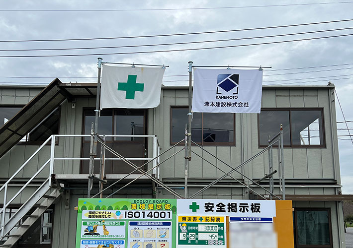 既存の安全旗と並べて、ポールに掲揚してご活用頂いております。