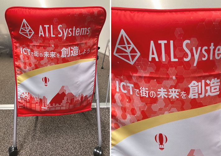 IT関連会社様のオリジナル椅子カバー、バナースタンド、バックパネルを製作させて頂きましたので、ご紹介いたします。