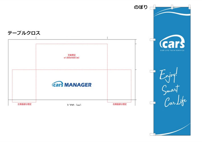 自動車関連会社様のオリジナルテーブルクロスとのぼりを製作させて頂きましたので、ご紹介いたします。
