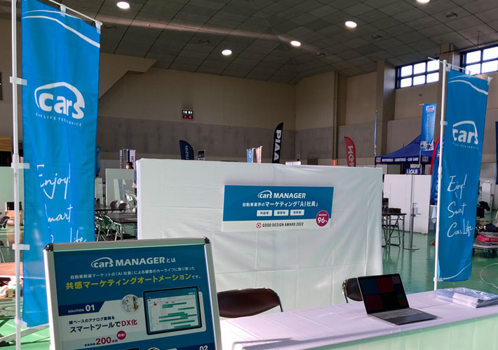 展示会ブースの両脇にのぼりを設置して頂きました。