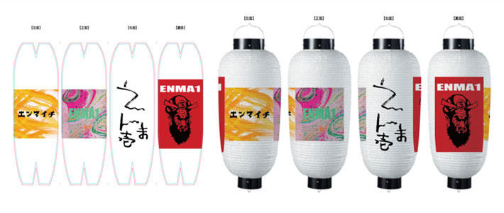 赤や黄色を使ったロゴデザインも鮮やかに印刷され、4面どこから見ても華やかでおしゃれな提灯になりました!