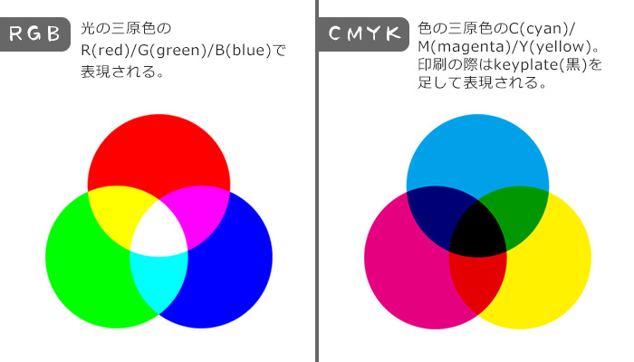 デジタルなものやデザインデータはRGB!印刷したものやなんかはCMYK!