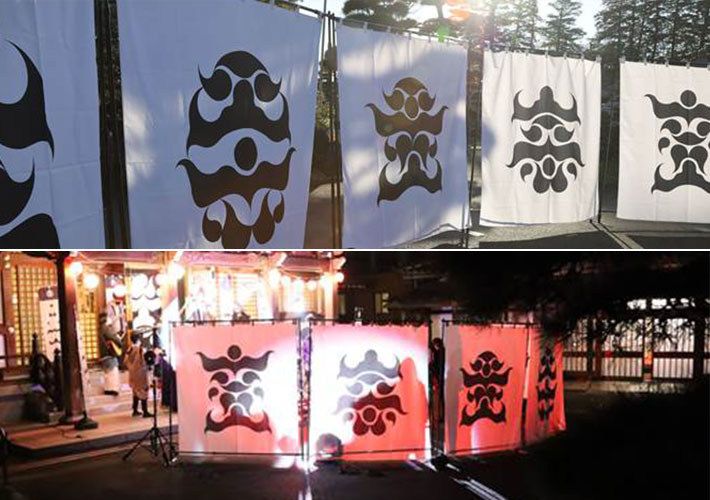 バナーと同じく透け感の少ないテトロントロマット生地を使用し、フルカラー印刷にて黒地に白色ロゴが入ったデザインを再現しております。