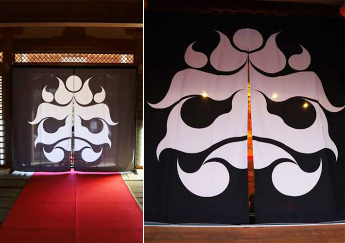 通常、のれんはポールなどに通して使用する場合が多いですが、今回は撮影用のためバナースクリーンワイドを使用することで、単体で自立するように設置しています。