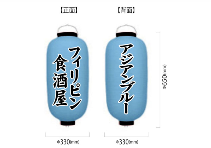 | 名入れ | 2面 正面/黒文字+白フチ【フィリピン食酒屋】 背面/黒文字+白フチ【アジアンブルー】 |