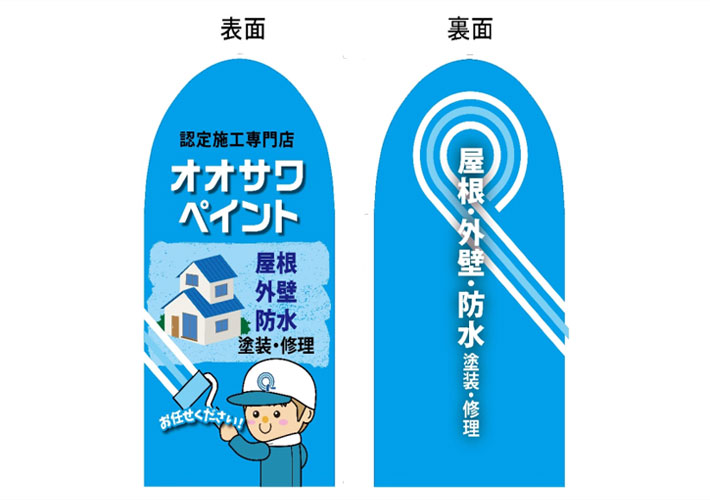 表面・裏面に店舗名やイラスト・サービス内容などの詳細が入った、こちらのデザインから名入れ制作を行いました。