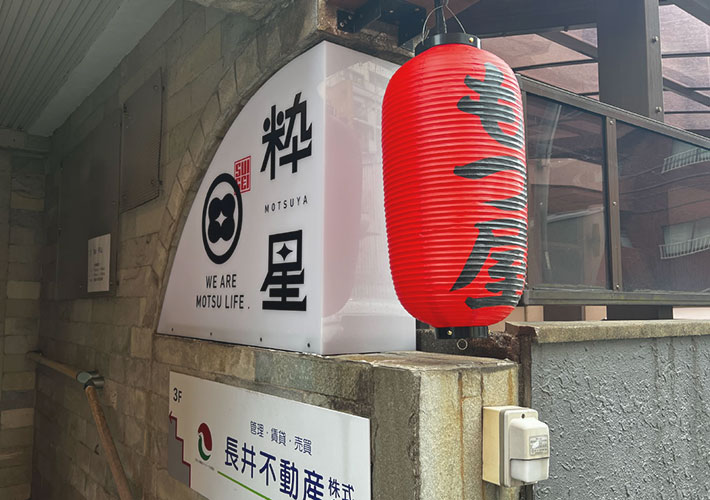 もつ屋店様の店舗看板提灯を製作させて頂きましたので、ご紹介いたします。