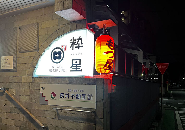 夜間は特に訴求効果を発揮し、もつ屋店様の存在をアピールしています!