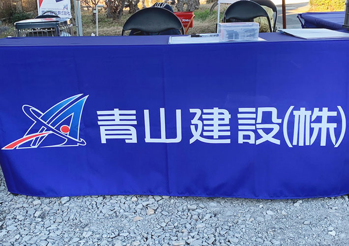 【事例678】建設会社様の見学会受付用テーブルクロスをテトロントロマットで製作いたしました