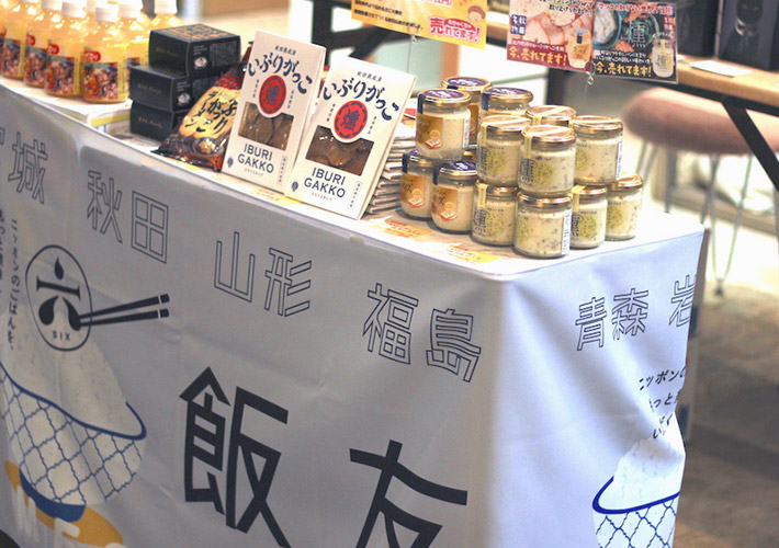 目に入りやすいイラストやロゴ入りで、東北の名産品の棚だとすぐに伝わるデザインです!