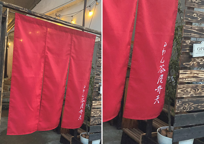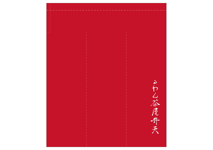 厚手の5号帆布生地に両面昇華転写印刷を施し、裏面は反転柄にすることで裏抜けを再現した店舗のれんとなっております。