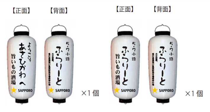 歓楽街の小路の名前やキャッチコピー、下部にはロゴが入ったこちらの2種デザインにて、それぞれ正面・背面に名入れ制作を行いました。