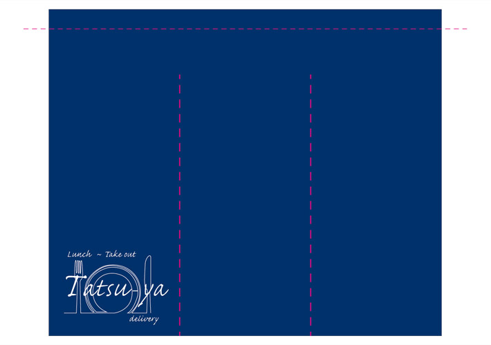 全面が紺色、向かって左端に白色で店舗ロゴが入った、こちらのデザインから名入れ制作を行いました。