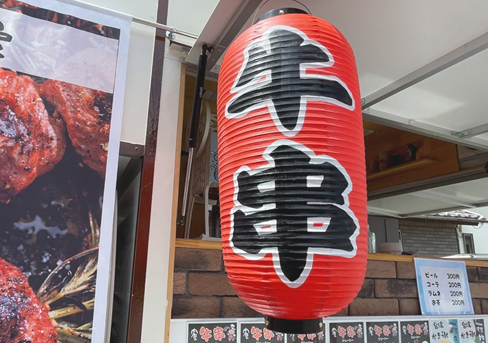 店舗の装飾・看板提灯は、店舗名または看板メニュー名のどちらかを名入れするデザインが定番ですが、今回は看板メニューとなる「牛串」をアピールするオリジナル提灯となりました!