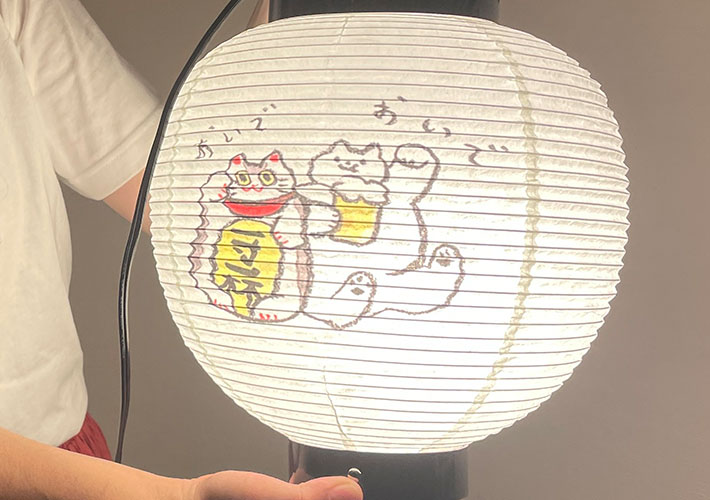 背面にはかわいい招き猫のイラストをプリントし、温かみのあるオリジナル提灯に仕上がっています。