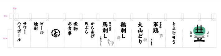 今回は、居酒屋様の店舗入り口に合わせて、横長のw3,400×h500(mm)サイズにて特注製作いたしました。