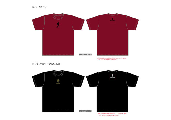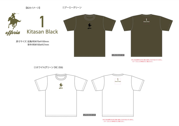 | 色指定 | ●胸中央プリント色 アーミーグリーン・バーガンディ生地 ⇒ ブラックプリント ホワイト生地・ブラック生地 ⇒ ダークグリーン/DIC-356 |