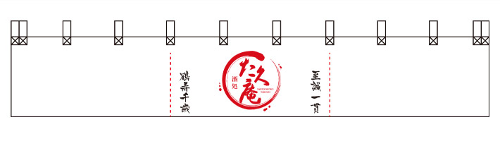 中央に赤色の店舗ロゴ、ロゴの両脇に黒文字で四字熟語が入った、こちらのデザインにて名入れ制作を行いました。