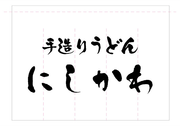 中央に横書きで大きく「手造りうどん」の文字と店舗名が入った、こちらのデザインから名入れ制作を行いました。