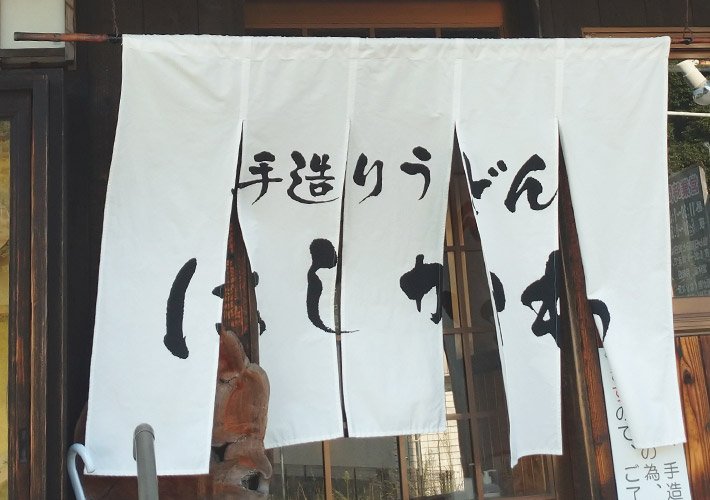 清潔なイメージを与える白地のれんは、うどん店様のイメージにもぴったりです。