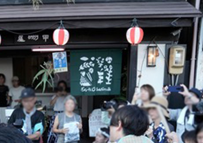 こちらは緑色のオリジナル暖簾の使用風景です。