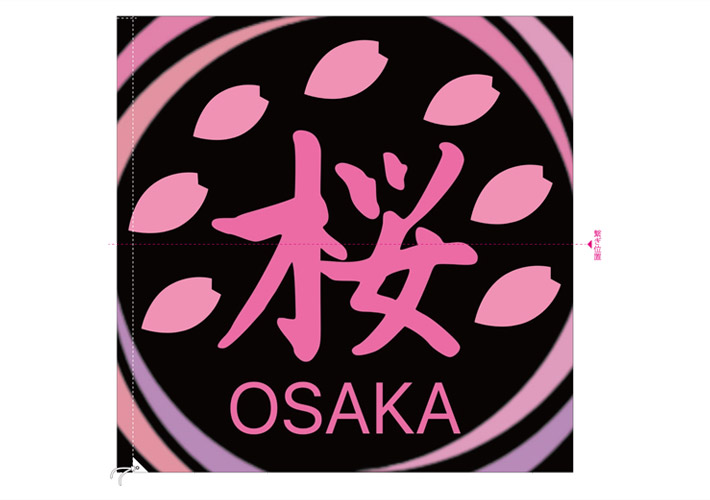 黒地にピンク色で大きく「桜」の文字や桜の花びらのイラスト、その周りにピンクや紫で円を描いたこちらのデザインから名入れ制作を行いました。