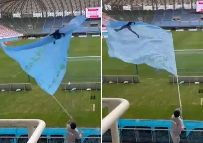 応援旗の中でも大きな特注サイズですので、観客席での存在感も抜群ですね!