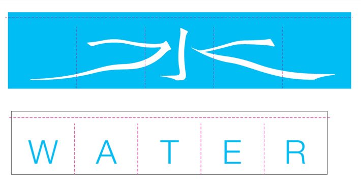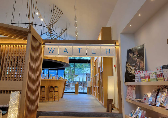 水色のベタ地に白色で「水」の文字が入ったデザインと、白地に水色で「WATER」の文字が入ったデザインから、2種ののれん制作を行いました。