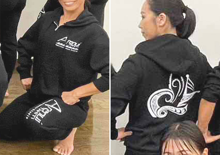 今回は左胸・背面に白1色のシルク印刷を施し、ダンススタジオ様にぴったりなトライバル風のデザインがおしゃれなオリジナルパーカーに仕上がっています!