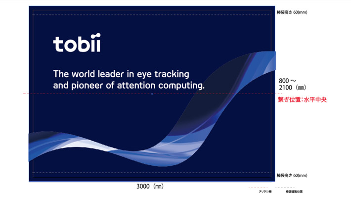 今回は、本体は「Pinバナービッグ w3000」、メディアサイズはw3,000xh2,100(mm)で特注作成を行いました。