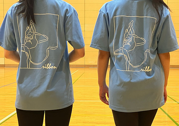 背面にもホワイトで1色プリントを行っていますが、こちらは大きく新体操のイラストが入ってインパクトのあるデザインです!