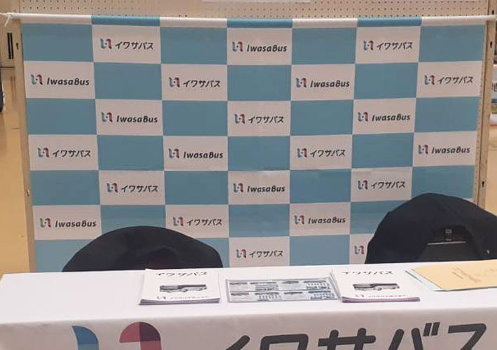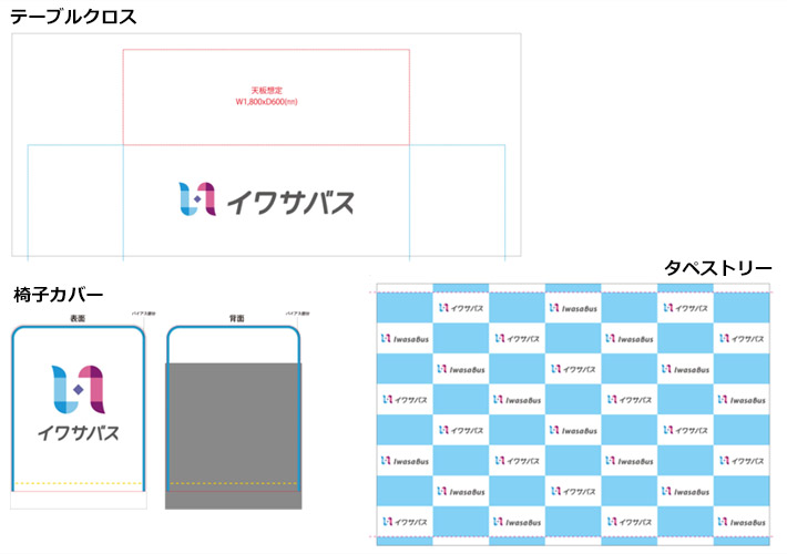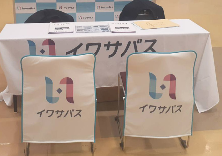 【事例838】貸切バス会社様の採用説明会用テーブルクロス、椅子カバー、タペストリーを製作いたしました