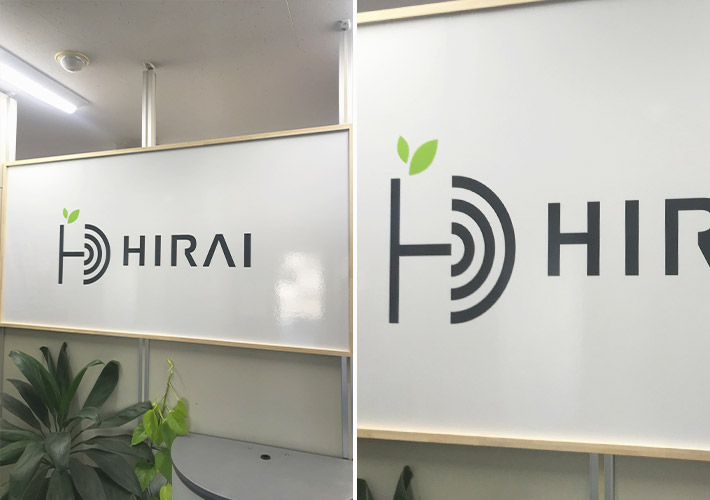 インクジェット印刷により企業ロゴをプリントしたトップボード(スチレンボード)を、社内装飾としてご活用頂いております。